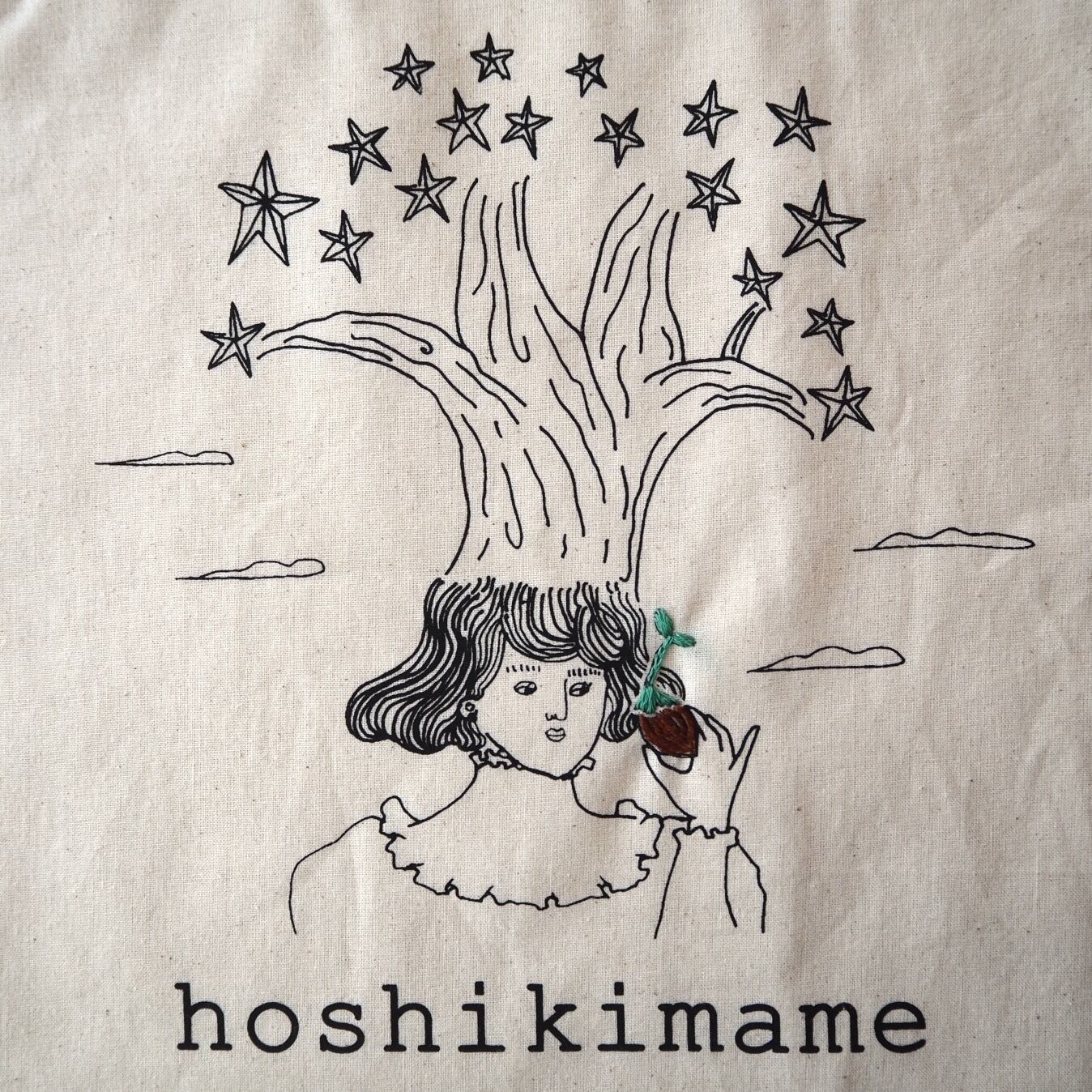 小さな豆が、木になり、星を実らせるように、暮らしの中に育つよろこびと、静かなきらめきをお届けするhoshikimameのコンセプトをイラストにしました。